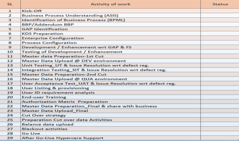 • Full-cycle ERP implementation using ASAP or Activate methodology: